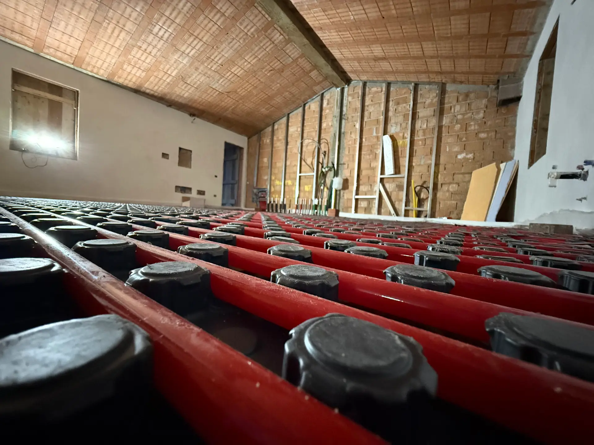 Ho eseguito una prova in pressione a 3 bar per verificare la tenuta dell’impianto. Il test è andato a buon fine. Successivamente, il sistema verrà avviato in modalità shock termico, per stabilizzare il massetto prima della posa dei rivestimenti.